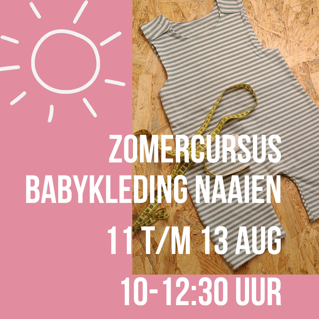 Heb je zin om na de echte beginnersprojecten als tasjes en kussenhoesjes ook wat moeilijkere dingen te naaien maar dan wel lekker klein? Of heb je een baby op komst of iemand in de familie of vriendenkring en wil je daar heel graag een cadeau voor maken? Hoe leuk is het om te leren hoe je babykleding en accessoires als een dekentje (of nog iets anders) zelf kan naaien? In vier extra lange lessen leer je in één week in de zomer verschillende projecten voor een baby maken. Je mag zelf kiezen waar je aan werkt, als je liever geen kleding maakt, dan zijn er nog een hoop andere dingen die een baby nodig heeft in de uitzet.